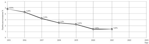 Рис. 128. Снижение ошибки распознавания по метрике WER