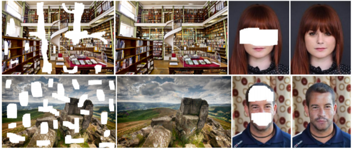 Рис. 159. Пример восстановления закрашенных или несуществовавших фрагментов изображения при помощи модели исследователей из Университета Васэда